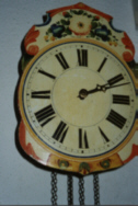 Kurzbeschreibung: Eine Schwarzwälder Barockschilduhr mit einem 1-Tage,stahlgespindeltem Ankerwerk und Schlagwerk auf Gong.Das farbige Schild lässt darauf